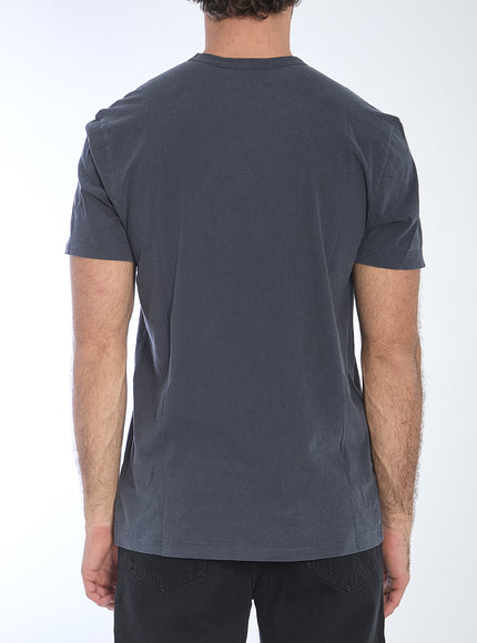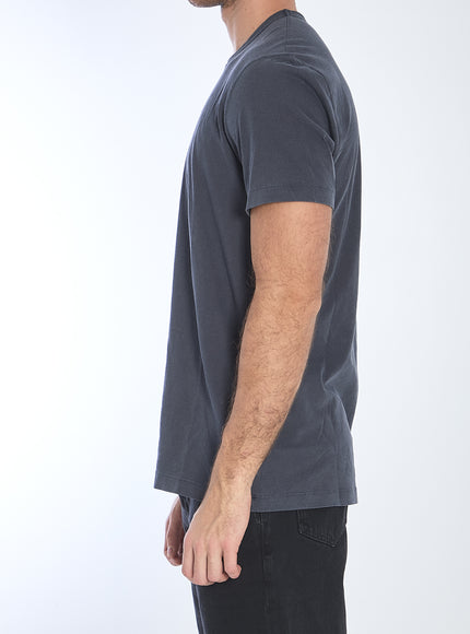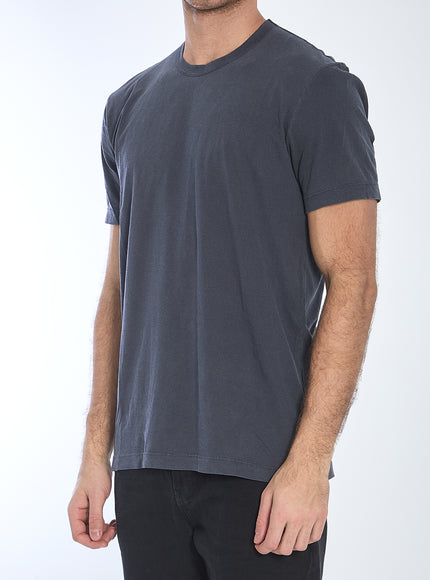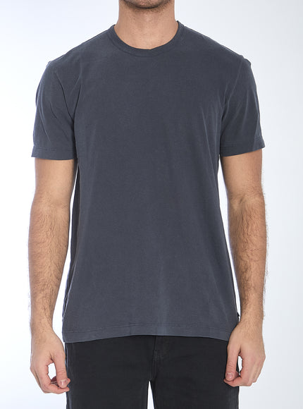 Short-sleeved crewneck t-shirt in blue combed cotton. Ribbed collar. Regular fit.