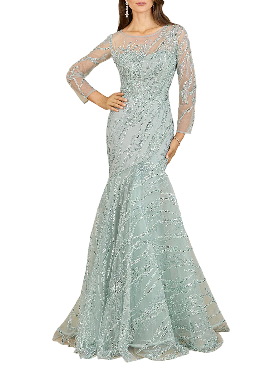 This elegant mermaid gown features long sleeves and an illusion sweetheart neckline. It is tailored to accentuate your curves for a flattering silhouette. A versatile design suitable for various occasions, including for a young mother of the bride, a sibling of the bride or groom, or the bride on her reception evening.