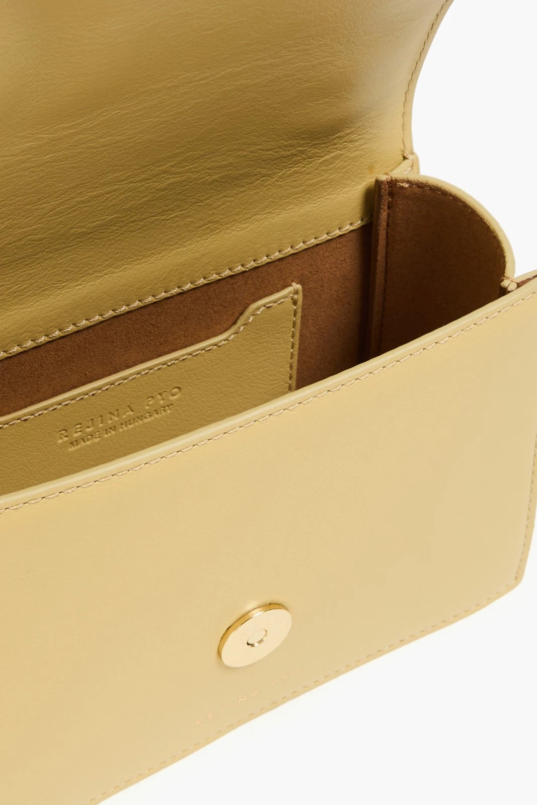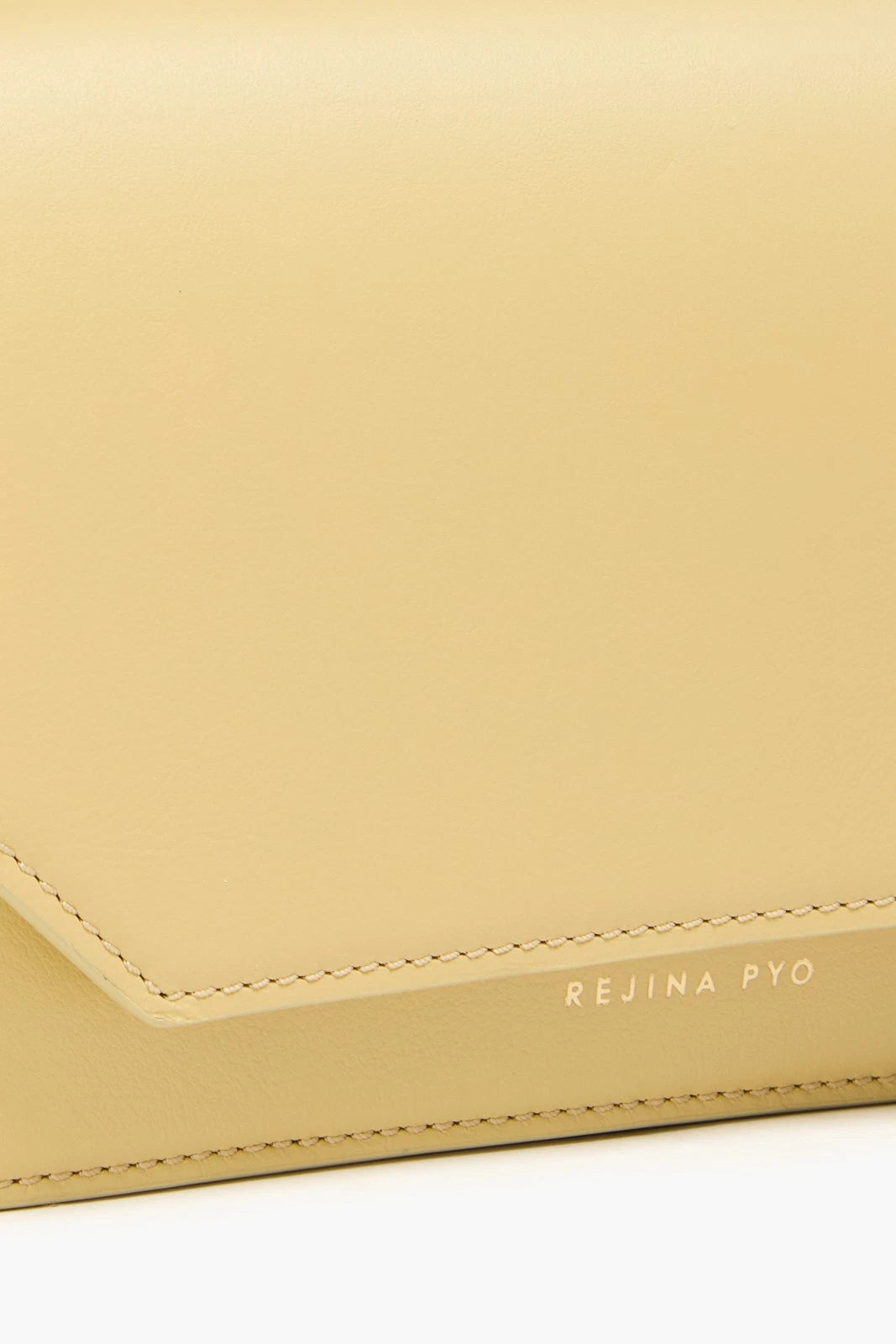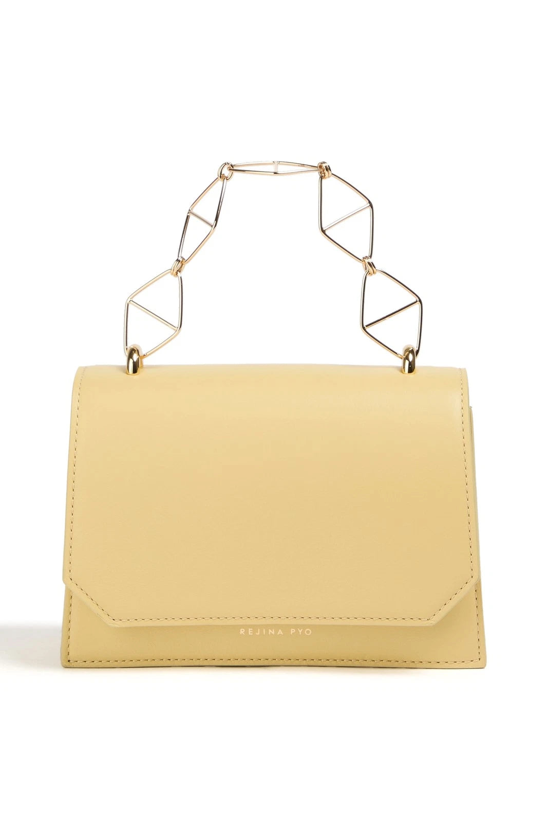 A statement in modern minimalism, the Rejina Pyo Leather Satchel blends timeless craftsmanship with the designer’s signature architectural flair. Crafted from smooth yellow leather, this structured satchel features a geometric gold-tone chain handle that doubles as wearable jewelry. The magnetic flap closure opens to a suede-lined interior with a convenient slip pocket, designed to carry your essentials in sophisticated ease.