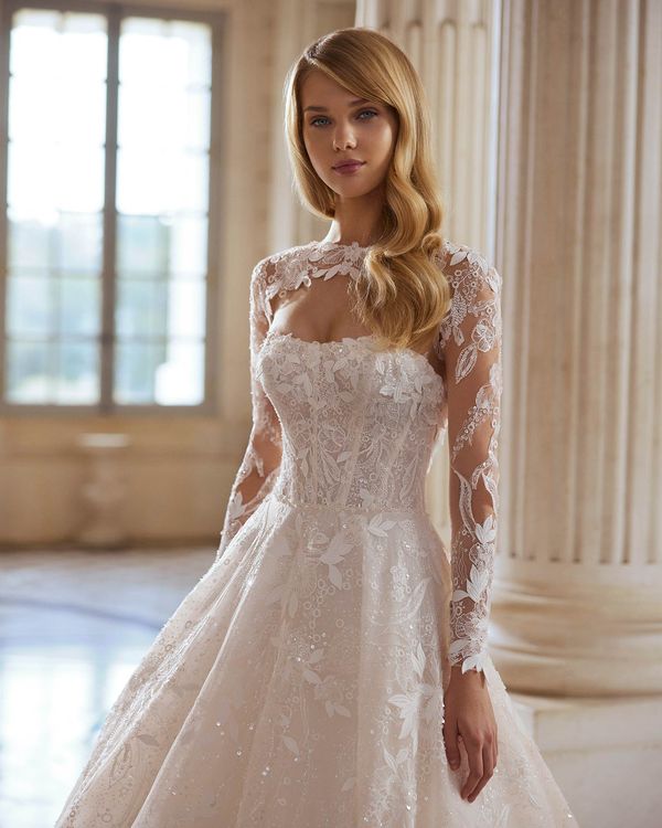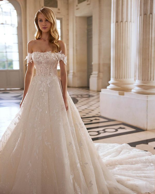The Orfeo gown embodies what we adore most about Rosa Clará — effortless sophistication and impeccable tailoring. The bow at the back feels playful yet refined, while the structured A-line silhouette creates movement without weight. It’s the kind of gown that looks stunning from every angle — graceful in the front, unforgettable in the back.