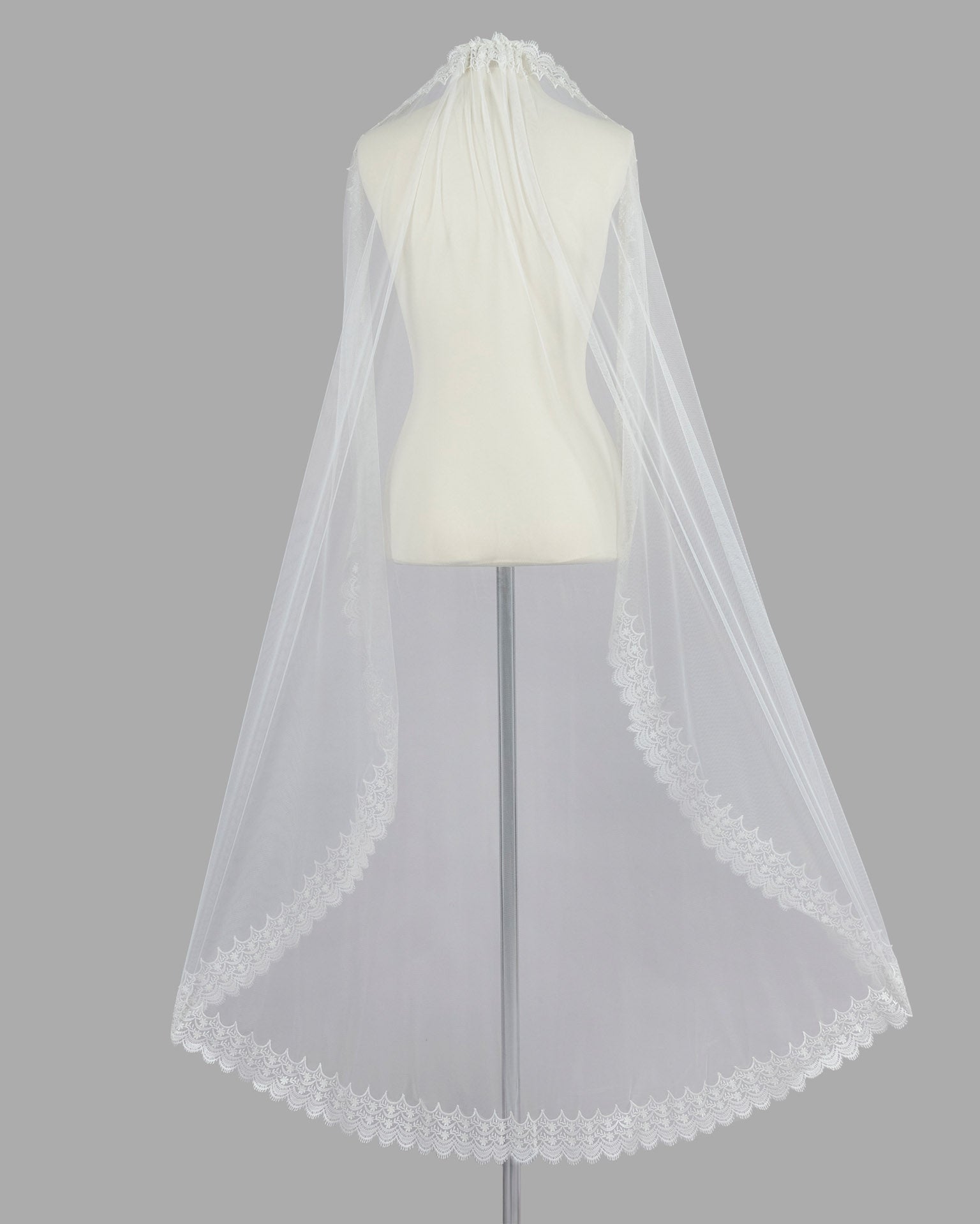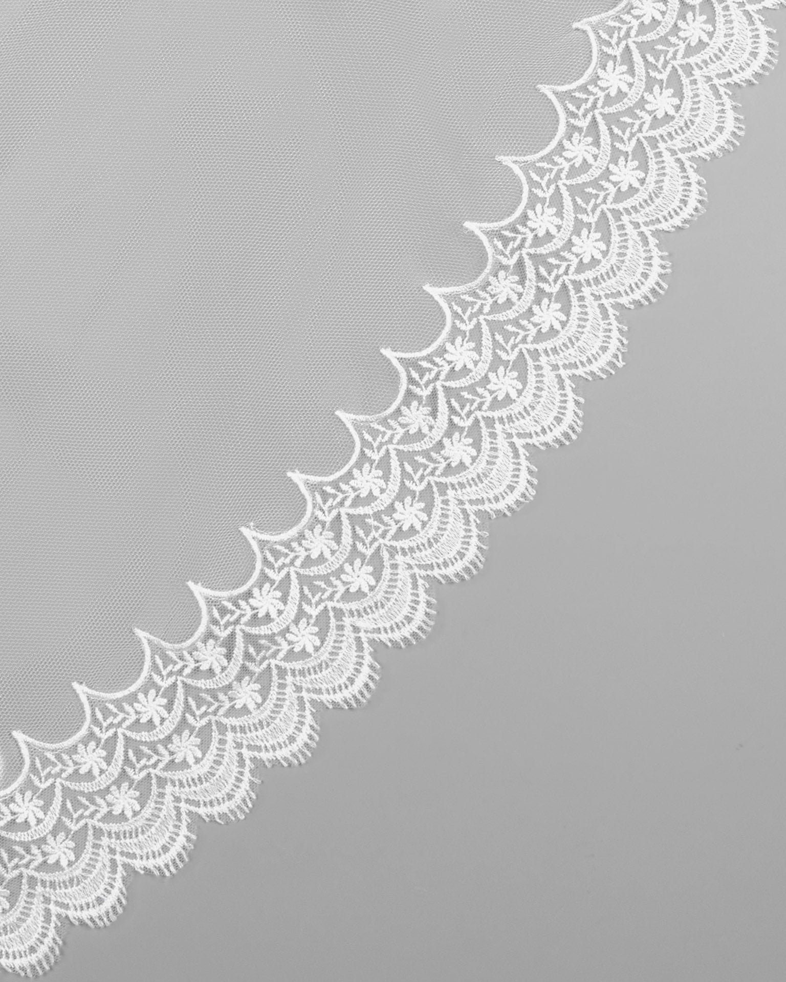 • Material: Soft tulle with intricate lace edging