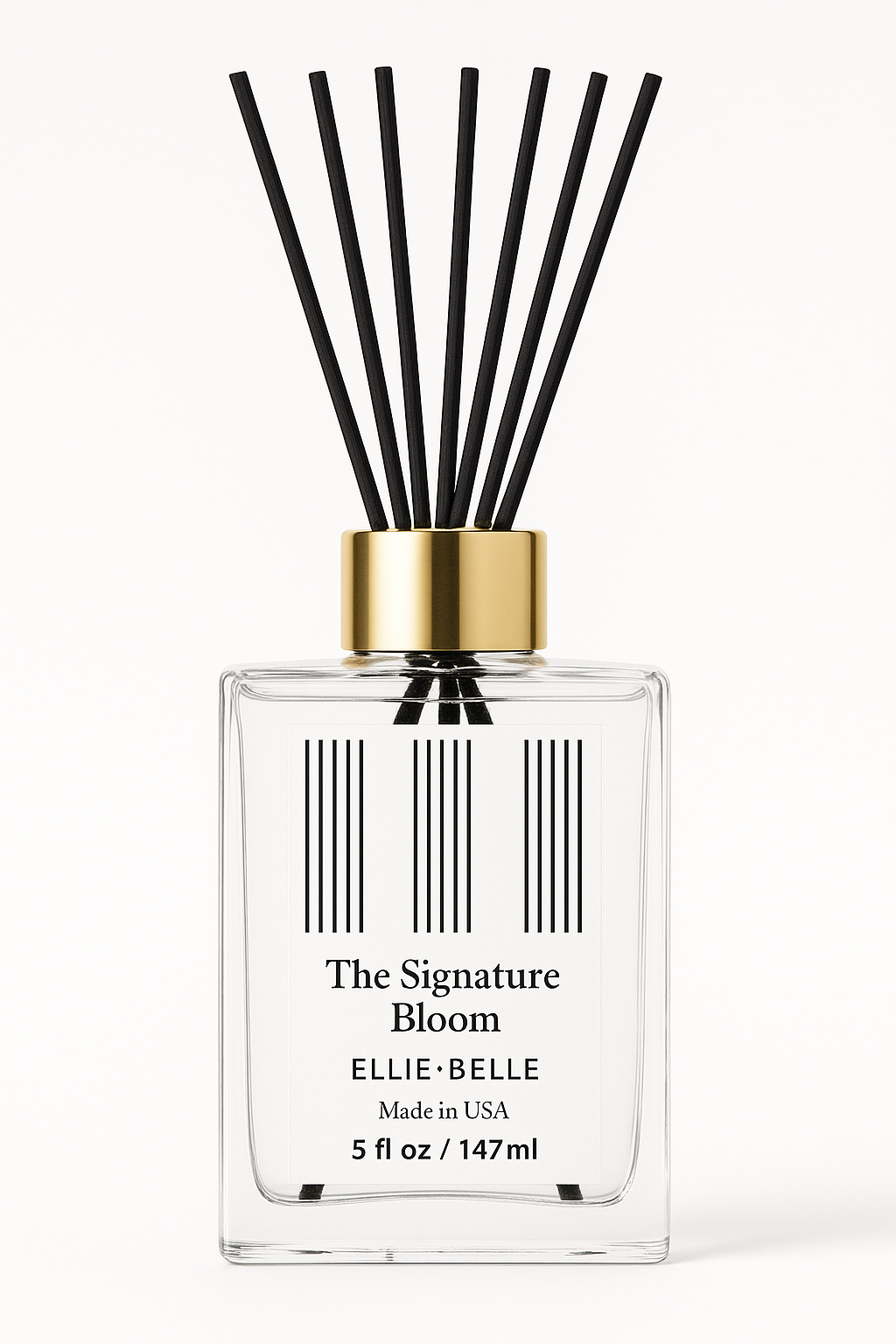 Step into a serene garden with The Signature Bloom, Ellie Belle’s signature reed diffuser. This elegant fragrance pairs airy florals with the freshness of dewy stems, finished by a whisper of sunlit zest. Crafted for lasting ambiance, it infuses your space with softness, clarity, and quiet luxury. Housed in a sustainably made, recycled glass bottle, this diffuser is free from Bisphenol A (BPA) and lead, and is fully Prop 65 compliant—safe for your home and gentle on the environment.