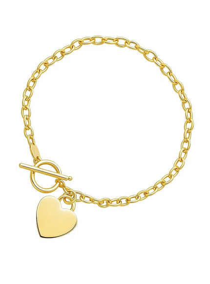 Toggle Bracelet with Heart Charm in 14k Yellow Gold