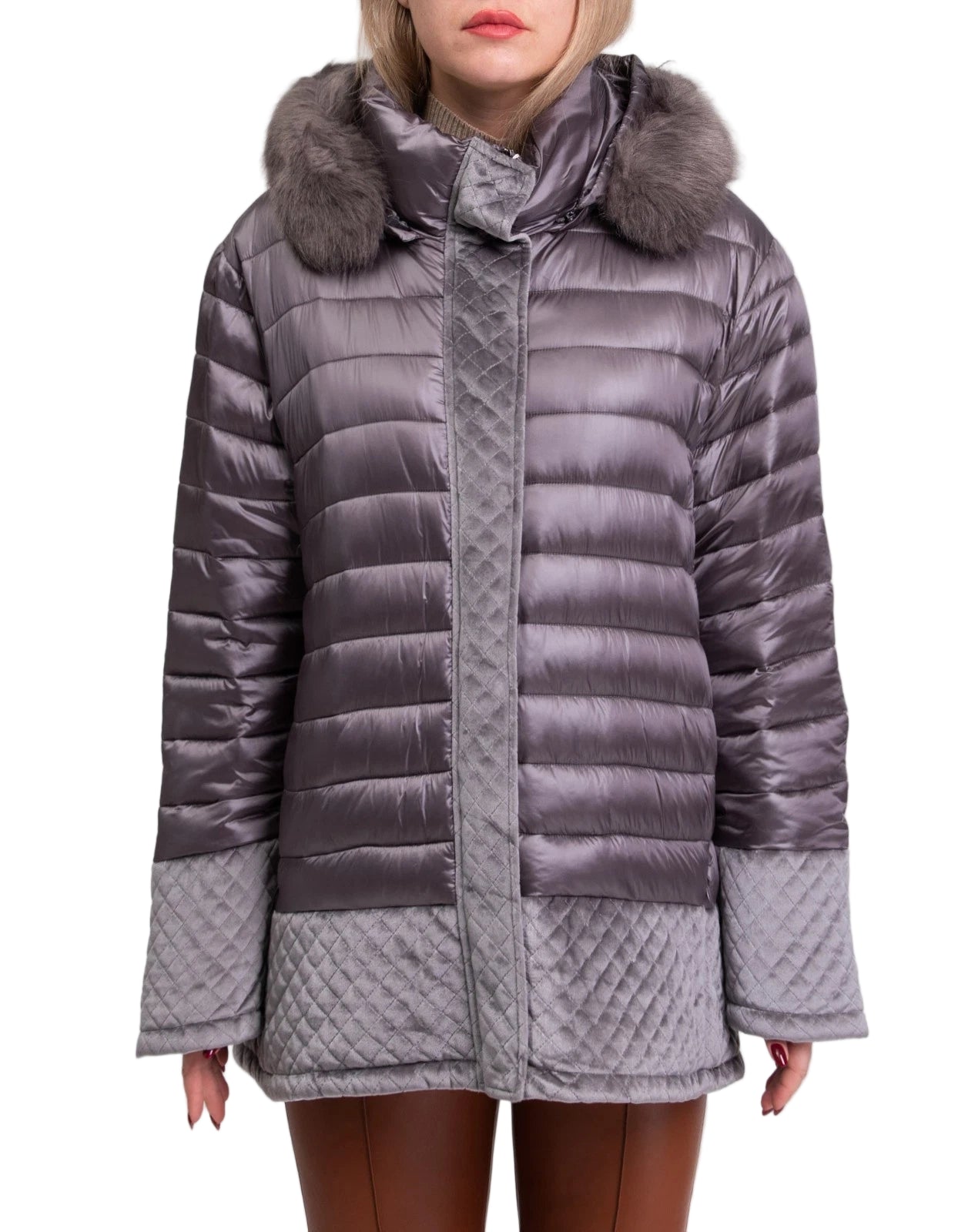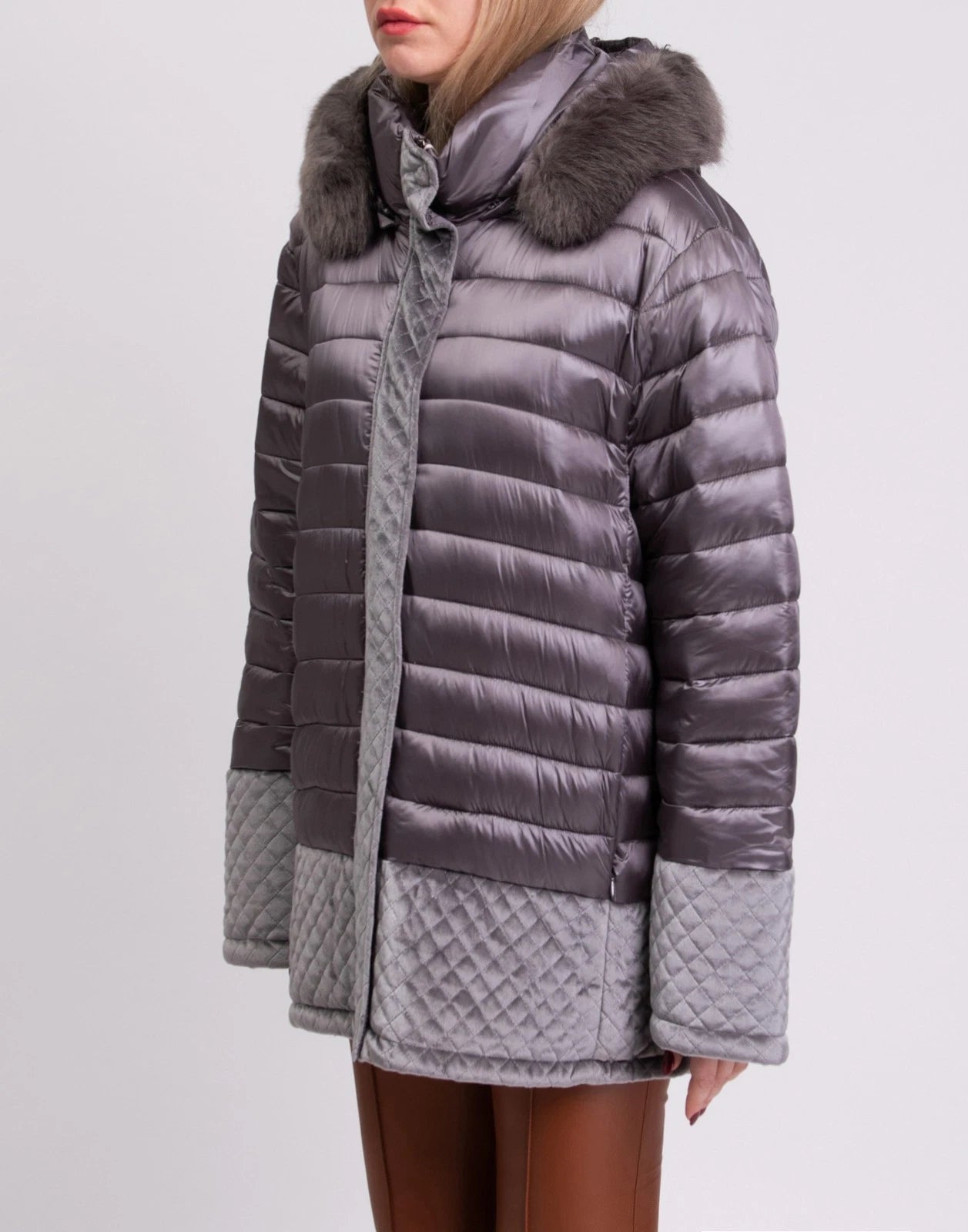 A modern interpretation of winter elegance, this TOY G Quilted Jacket combines warmth and refined texture in a soft grey hue. Featuring a sleek, lightweight silhouette with quilted detailing and velour-trim accents at the cuffs and hem, it offers a luxurious contrast of matte and sheen. The detachable hood with plush faux-fur trim adds versatility, while the full front zip closure ensures ease and comfort through changing weather. Perfect for city strolls or weekend escapes, it pairs effortlessly with denim, leather, or tailored separates.
