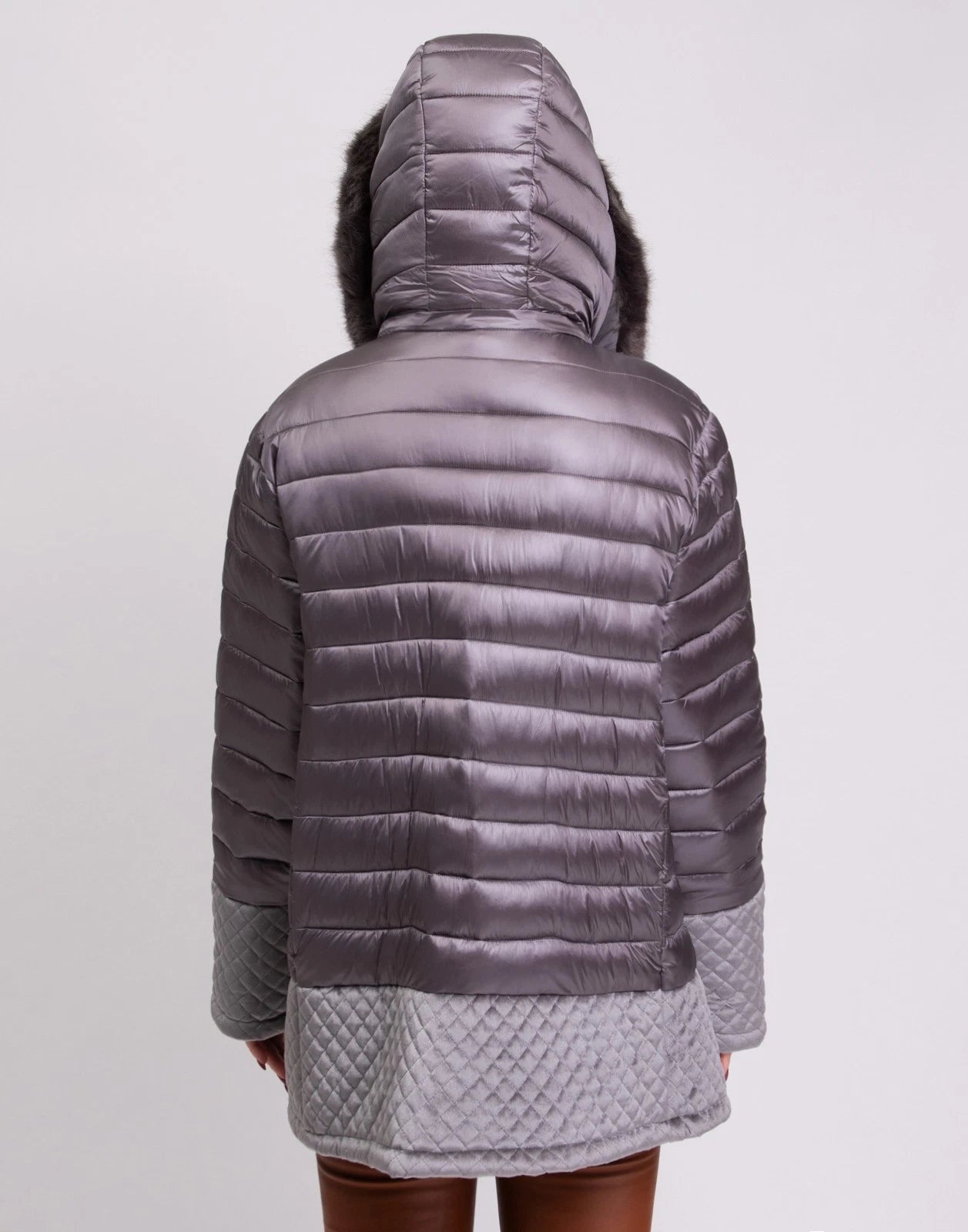Toy G Quilted Hooded Jacket with Velour Trim – Grey