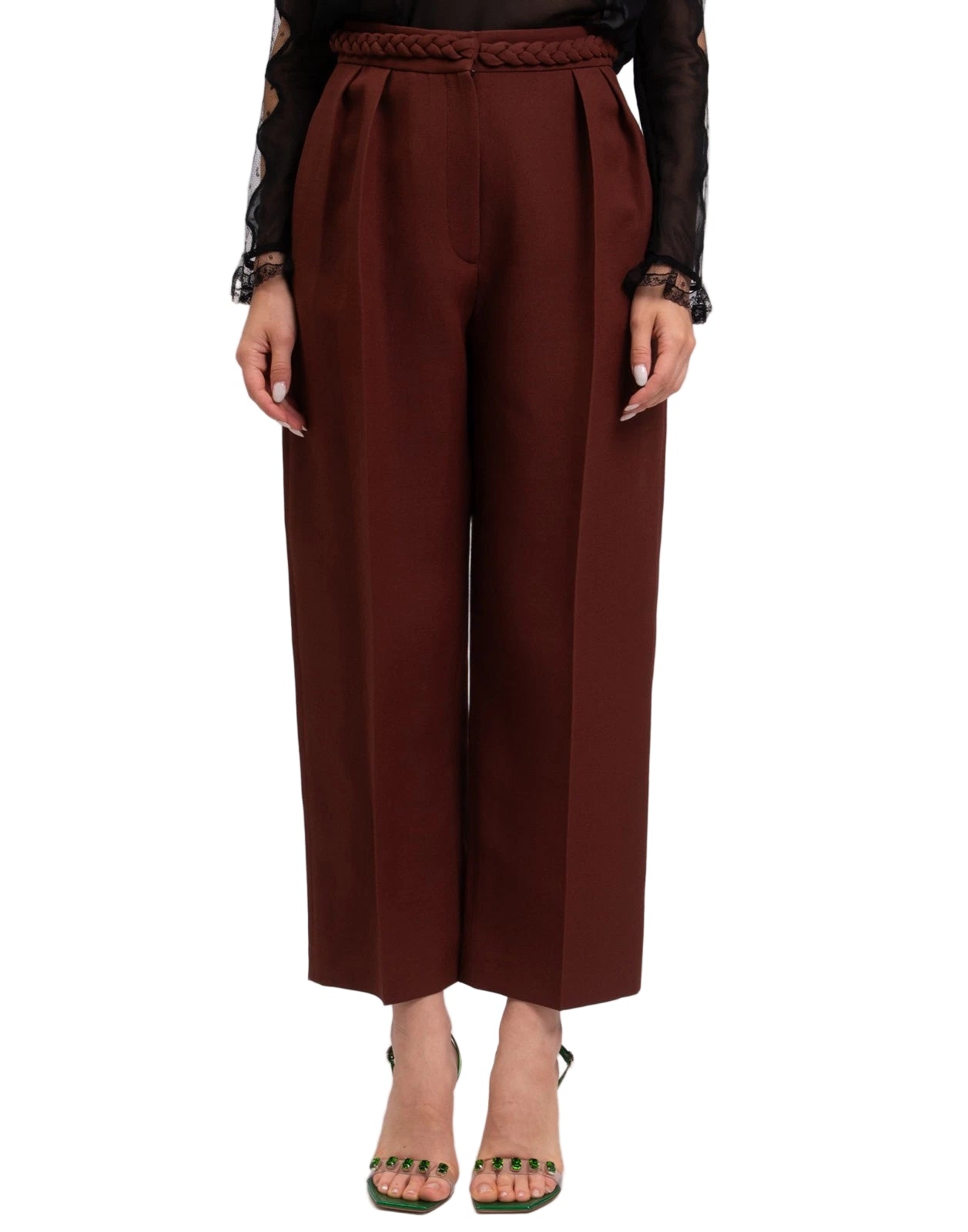 Valentino Wool & Silk Pleated Cropped Trousers with Braided Waist